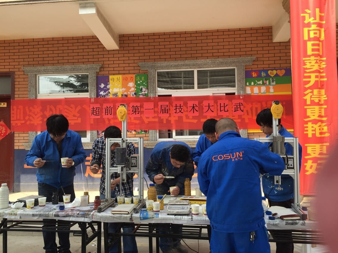 從一點(diǎn)開始一直到三點(diǎn)半才結(jié)束,幾位超前的超人們也都調(diào)配出自己滿意的外墻多彩漆樣板,交出滿意的答卷。以后,超前涂料會經(jīng)常舉行這樣的比賽活動,調(diào)動超人們的學(xué)習(xí)精神,給客戶提供更好的服務(wù),也請各位客戶多多關(guān)注我們超前http://www.sonady.net